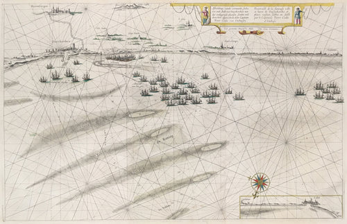 Blaeu, Willem “Afbeeldinge vande vermaerde seehaven…Duynkereken…” [Flanders coast Dunkirk to Waldamme, inset to Calais, France]