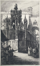 Affleck (1874-c.1935) was a painter and etcher from Ayr who specialized in architectural subjects, and ranked with Hedley Fitton and Axel Haig.  Affleck also produced a few landscape and topographical scenes. He was of Scottish origin but settled in London having spent a lot of time travelling extensively and living for long periods in England, Belgium, France and Spain. Affleck etched many views in England, Holland, Italy, Belgium and in America. Around 1910 Affleck moved permanently to France and some of his finest art deals with French buildings and their interiors. Today, the largest collections of Affleck's original etchings are housed in the British Museum, London.