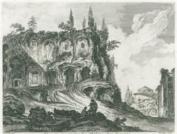 Though French by birth, Jean Barbault (1718-1762), who studied under Jean Restout II, is best known for his views of Italy where he moved at age 29. His activity as an artist and etcher was much inspired by the Imperialistic art culture current in Rome at the time, and most notably of Giovanni Battista Piranesi, for whom he engraved some plates for the Vedute di Roma and Le Antichita Romane. Barbault entered the Académie de France in Rome, where he studied until he was thrown out for having married, a situation forbidden for Academicians. He is best known for his publication of his Collection Of Views, Most Beautiful Ancient Monuments Of Rome And Surroundings; Barbault’s views of Rome emphasize the public spaces and buildings, the piazzas and other open spaces, with little notice given to the people of the city. The prints showing ancient temples, ruins and dramatic landscapes are elegantly depicted showcasing the past grandeur of the “Eternal City.”