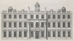 A print from a series of distinguished architectural views and plans of important contemporaneous British buildings, by one of England's famed 18th-century architects. Colen Campbell's purpose, through these large and beautifully executed drawings, was to praise and promote a great school of neo-Palladian design and building by proudly illustrating the work of his notable contemporaries, such as Inigo Jones. As the title of the work suggests, his aim was to link England's glorious present with the concerns of the exalted first century B.C.E. 'classical' architect, Vitruvius.