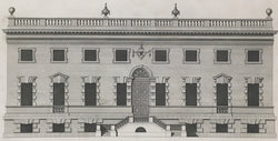 A print from a series of distinguished architectural views and plans of important contemporaneous British buildings, by one of England's famed 18th-century architects. Colen Campbell's purpose, through these large and beautifully executed drawings, was to praise and promote a great school of neo-Palladian design and building by proudly illustrating the work of his notable contemporaries, such as Inigo Jones. As the title of the work suggests, his aim was to link England's glorious present with the concerns of the exalted first century B.C.E. 'classical' architect, Vitruvius.