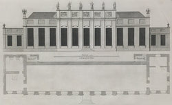 A print from a series of distinguished architectural views and plans of important contemporaneous British buildings, by one of England's famed 18th-century architects. Colen Campbell's purpose, through these large and beautifully executed drawings, was to praise and promote a great school of neo-Palladian design and building by proudly illustrating the work of his notable contemporaries, such as Inigo Jones. As the title of the work suggests, his aim was to link England's glorious present with the concerns of the exalted first century B.C.E. 'classical' architect, Vitruvius.