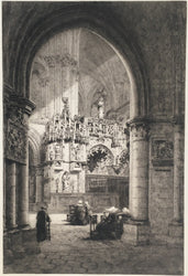 In 1875 Haig traveled to Sicily, Italy, and Germany to sketch the local scenery. Many of his etchings came from these early drawings. Haig did not begin etching until 1870 and he was for the most part a self-taught printmaker. The first exhibition of his etchings was in 1880, when his work was praised by many. It was in this same year that Haig, along with Francis Seymour Haden and others, founded the Royal Academy of Painters-Etchers and Engravers. Haig always distinguished between architectural drawings and drawings of architecture. In all of his etchings, Haig’s objective was to incorporate a balance between a romantic and a dramatic effect, but also to depict his subject as accurately as possible.