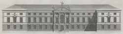 A print from a series of distinguished architectural views and plans of important contemporaneous British buildings, by one of England's famed 18th-century architects. Colen Campbell's purpose, through these large and beautifully executed drawings, was to praise and promote a great school of neo-Palladian design and building by proudly illustrating the work of his notable contemporaries, such as Inigo Jones. As the title of the work suggests, his aim was to link England's glorious present with the concerns of the exalted first century B.C.E. 'classical' architect, Vitruvius.