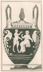 Epitomizing eighteenth-century fascination with antiquities this print was taken from Giambattista Passeri's famed collection of antique Etruscan pottery. As Abbate of Pasero, he was one of the most well-known and enthusiastic collectors of ancient terra cotta. A prolific scholar, Passeri published a book of the designs found on the objects he purchased, and the result was an exceptionally striking group of prints showcasing classic themes of ancient Etruscan and Roman design.