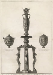 Giovanni B. Piranesi. [Ornamental tripod and two vases]. From Vasi, candelabri, cippi, sarcofagi, tripodi, lucerne, ed ornamenti antichi.