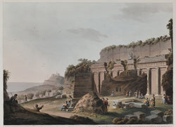 Luigi Mayer (1755-1803). “A Grotto Cut in the Rock Near Lindo, in Rhodes.” [Greece]. From Views in Egypt, Palestine, and Other Parts of the Ottoman Empire.