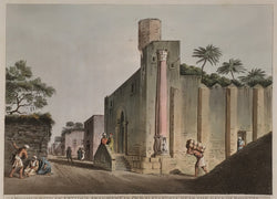 Luigi Mayer (1755-1803).  “A Mosque With an Antique Fragment in Old Alexandria Near the Gate of Rosetta.”   [Egypt].  From Views in Egypt, Palestine, and Other Parts of the Ottoman Empire