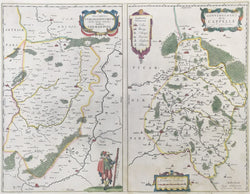A series of wonderfully decorative maps of France, Spain, the Netherlands and their regions by Willem (Guilielmus) Janszoon Blaeu (1571-1638), the progenitor of the famous Blaeu cartographic firm of Amsterdam. Blaeu studied astronomy and sciences with Tycho Brahe, and in 1599 established a globe and instrument making business which soon expanded to include cartographic and geographic publishing. This firm was to go on to become the largest and most important cartographic publishing firms in the world, run by his sons Cornelis (until his death in 1642) and Joan. The maps issued by the Blaeu firm are known for their fine craftsmanship and design, and have been called “the highest expression of Dutch cartographical art.” These maps, with their excellent original color, are premier examples of the Blaeu output.