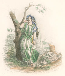 Images from a series of delightful prints illustrating flowers personified in the form of lovely maidens and their animal retinues. Each early 19th-century female figure is richly costumed in the leaves, blossoms and garlands that designate her flower. She presides in an appropriate 'natural' setting, often surrounded by anthropomorphised insects and birds that pay her homage. These poetic interpretations of nature are a fetching example of early 19th-century literary and artistic invention. Their charm, as well as their mischievousness, bespeak the Victorian fascination with an animated and psychologically fertile natural world, the world made familiar by Lewis Carroll's Alice in Wonderland.