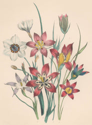 A bright and wonderfully decorative set of prints from Mrs. Loudon's famous Ladies' Flower Garden. Designed both as an instructive work to educate the cultured woman and as a visual delight, the prints nicely achieve both aims. Delicately lithographed and cheerfully hand colored, the flowers are arranged in attractive bouquets. These are indeed fine examples of the high quality craft of the nineteenth century.