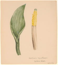 W.M.E.F. “Orontium aquaticum. Golden club.” ca. 1880 to 1920. 8 x 7 (paper) Watercolor. Initialed at bottom. With stain. Very good condition.