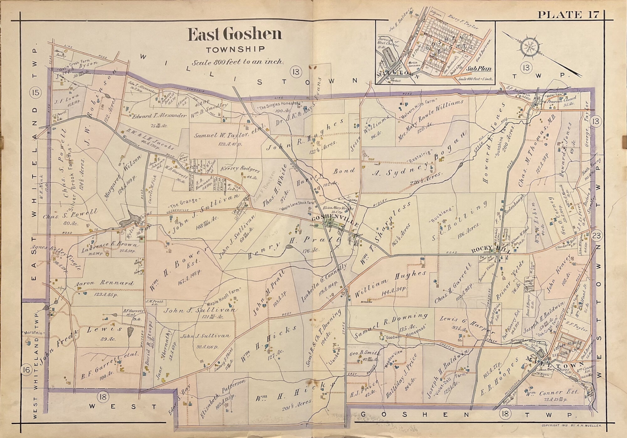 A.H. Mueller. Plate 17. "East Goshen" From Atlas of Properties on Main Line Pennsylvania Railroad from Devon to Downingtown and West Chester.