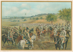 A print from a series illustrating the history and the uniforms of the American Army and Navy, from the American Revolution to the Spanish American War. The prints were issued by the Werner Company of Akron, Ohio, and they were made with vivid chromolithography.