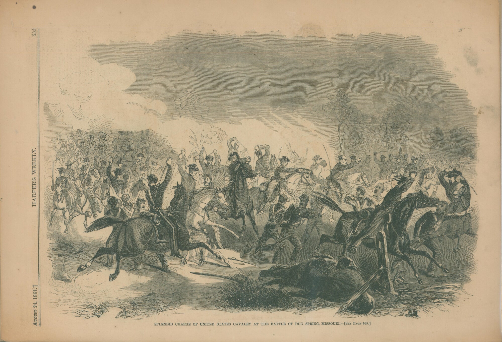 Unattributed. "Splendid Charge of United States Cavalry at the Battle of Dug Spring, Missouri."