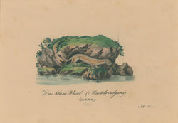In the grand tradition of natural history prints, this image both delights the eye and informs the mind. Skillfully drafted, each animal in Büchner’s work appears in profile against a picturesque representation of its primary habitat. Clean, well-executed lithography shows off even fine details, like the texture of the animal’s fur coat. Original hand color enhances both the accuracy and the aesthetics of each print. To satisfy the curious viewer, average measurements are noted below titles. Though printed in German, this group of Säugethiere, or mammals, reaches far beyond western Europe to include species from parts of Africa and Asia alongside local animals. Beyond his language, little is known about artist J.L. Büchner, but his keen eye and skill place this series among finest educational and decorative natural history series of the early nineteenth century.