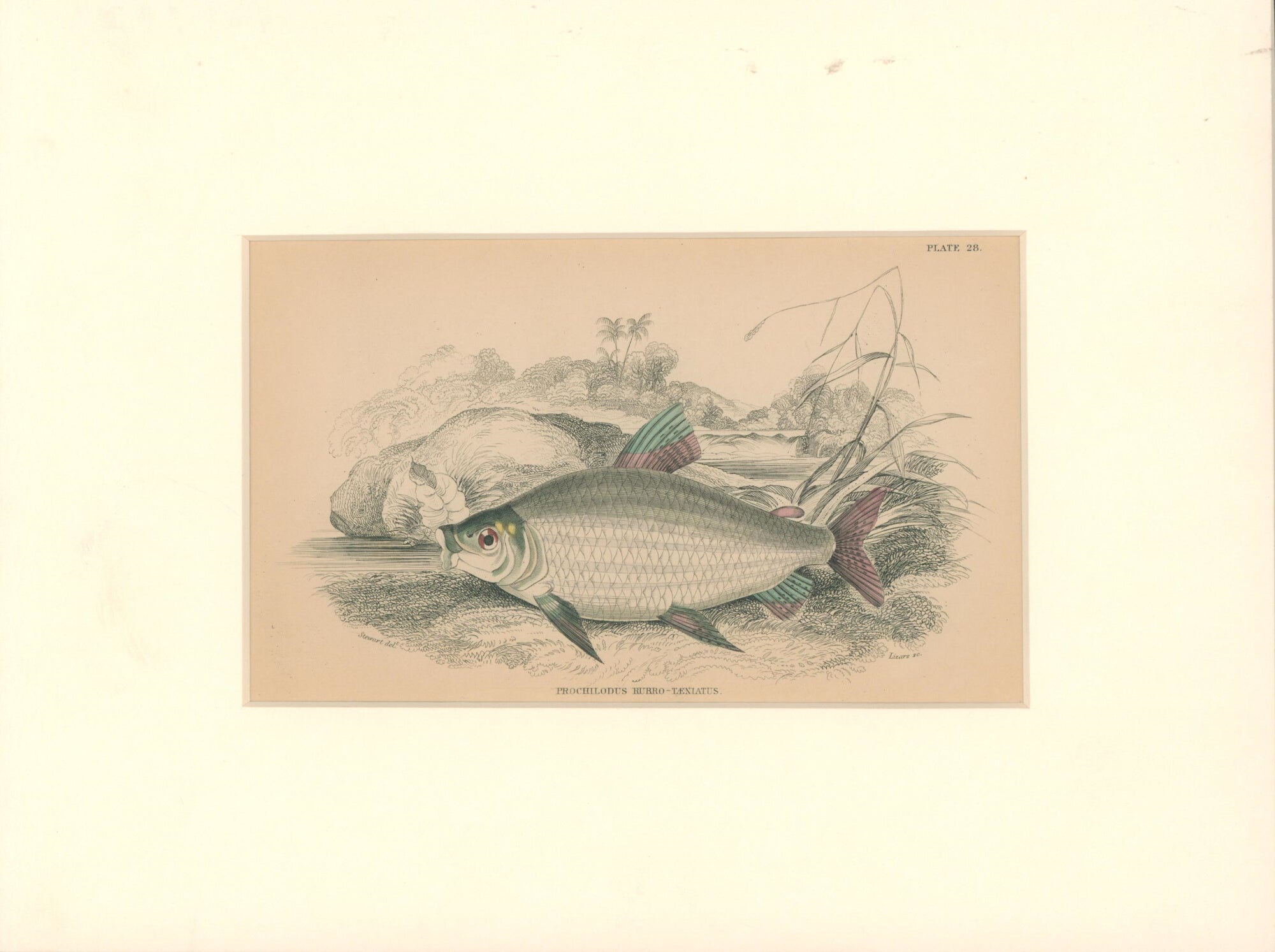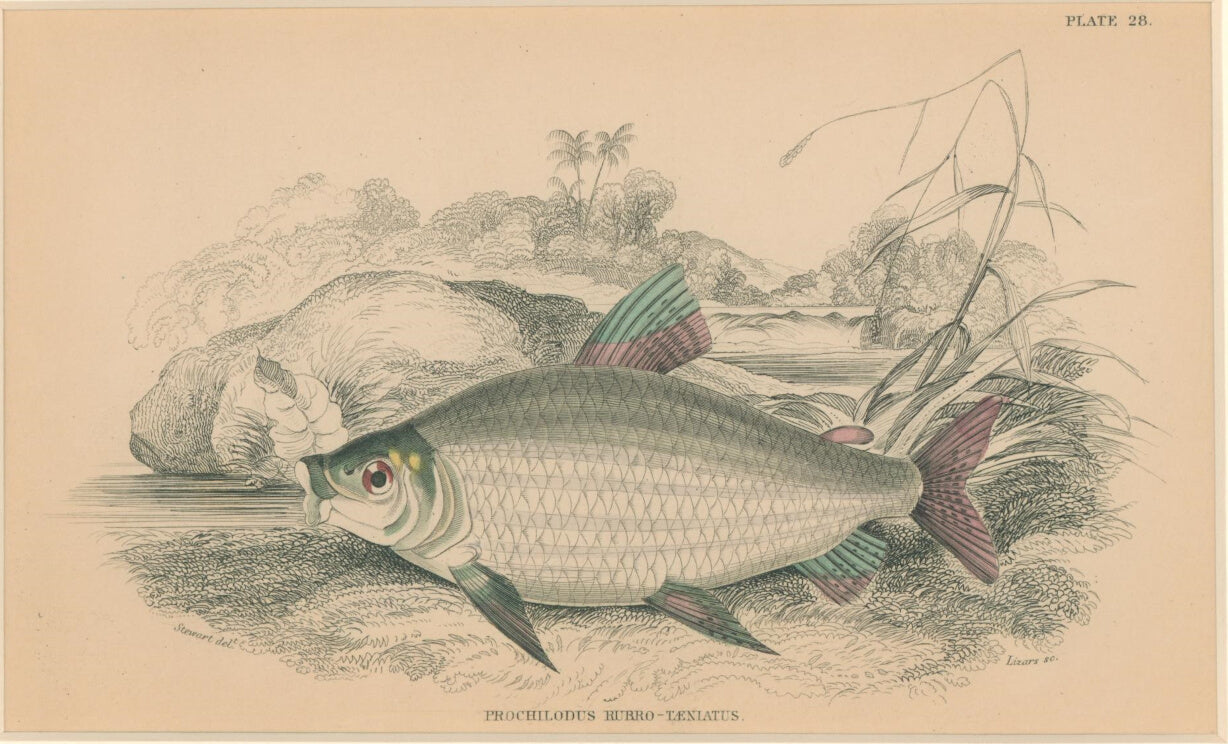 Pl. 28 "Prochilodus rubro-Taeniatus". Sir William Jardine’s The Naturalist’s Library.