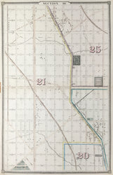 An extremely scarce map from the first atlas of the city of Philadelphia following the consolidation of the city in 1854. Samuel L. Smedley was born on 29 December 1832, at Edgemont, Delaware County, and was educated at Westtown Academy and at a school in Germantown. In 1853 he moved to Philadelphia to work for another Edgmont native, Joseph Fox, a Philadelphia surveyor, to learn drafting and civil engineering. Development increased after Philadelphia County's various townships and other municipalities united in 1854 to create the modern city. In 1856, Smedley was appointed by the commissioners of Blockley Township to plot streets there. In 1858, he became a member of the Board of City Surveyors and, in 1862, he published the first complete street atlas of Philadelphia. City Councils named him Chief Engineer and Surveyor of Philadelphia in 1872, a position he held until his retirement in 1893. During his tenure, he oversaw the construction of the Schuylkill bridges at Penrose Ferry, Market Street, Walnut Street, Spring Garden Street and Girard Avenue, and superintended much of the development of Fairmount Park's walks and drives. He supervised construction of the 116-foot aqueduct arch that crosses Cresheim Creek where it meets the Wissahickon Creek. On its completion in 1892 it was considered an engineering marvel and was said to be the second largest stone arch in America.