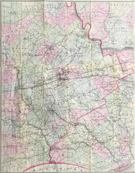 One half of a large map of Philadelphia and the region. This map depicts only the western part of the Philadelphia suburbs which extends from Upper Providence Township in Montgomery County down to the Delaware State border and from the western end of Radnor Township to West Bradford Township in Chester County. Extensive information is given for these areas including roads, rivers, rail lines, mills, hotels, meeting houses, and myriad other geographic details.