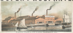 A color advertisement that shows the fertilizer factory complex on the riverfront in Wilmington, Delaware. This company was located just to the right of the Market Street Bridge where the parking lot for Tubman Garrett Riverfront Park is today.