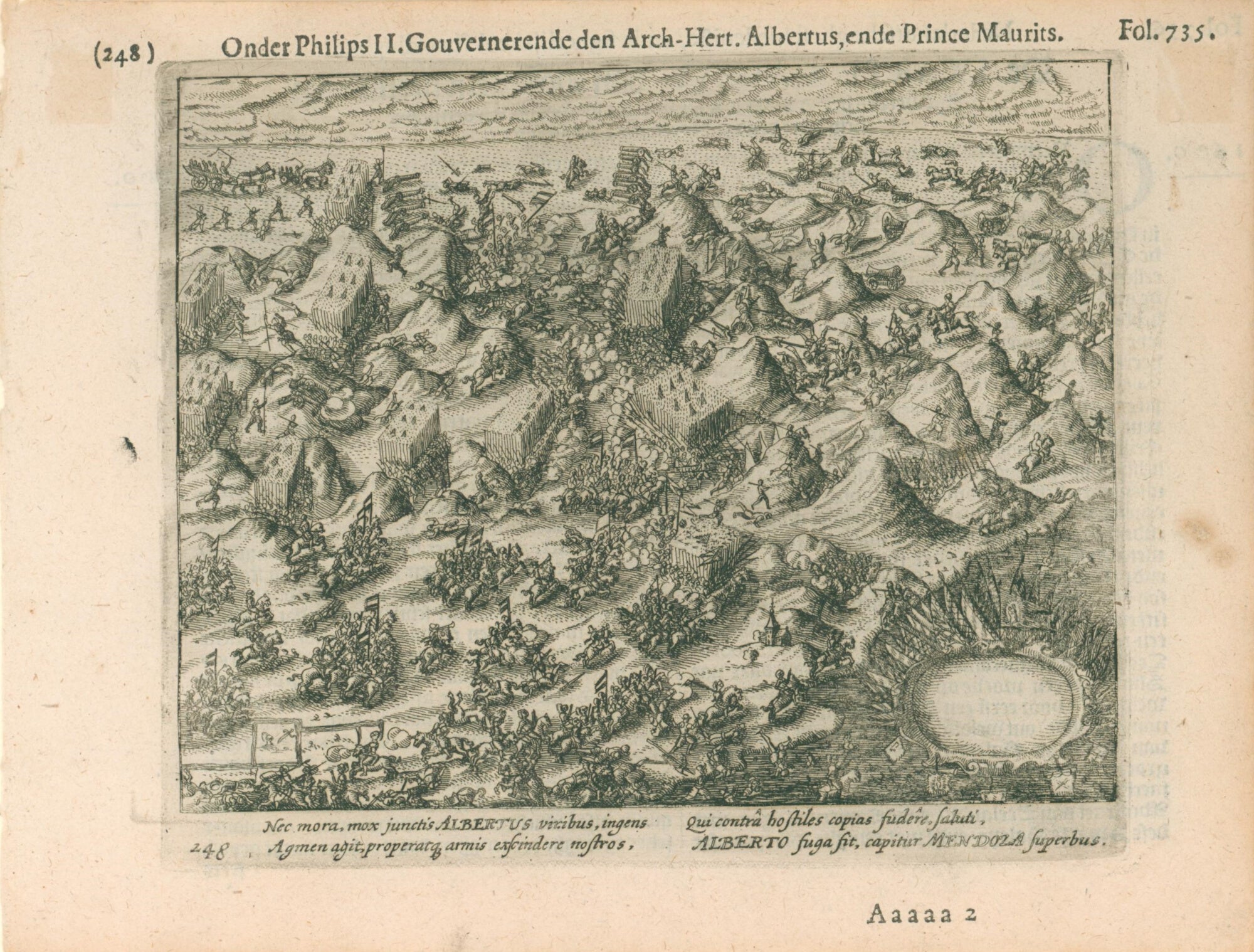 Engraving of the Low Country revolt against Spain. Early seventeenth century. Engraving. Ca. 5 x 6 1/2. Very good condition.