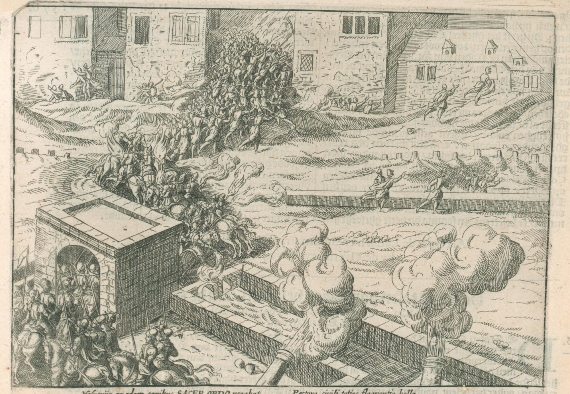 Engraving of the Low Country revolt against Spain. Early seventeenth century. Engraving. Ca. 5 x 6 1/2. Very good condition.