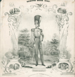 New York: Hewitt & Jacques, 1840. Lithograph sheet music with cover showing a soldier in full dress uniform. 9 3/4 x 9 3/4 (image) 12 1/2 x 9 3/4 (sheet). Trimmed at top and right. Small chip in top left, with light spots in margins. C:2804.