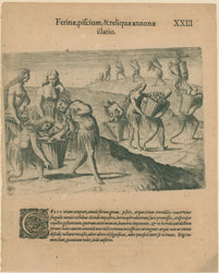 De Bry, Theodor. Pl. 23 [Bringing in Wild Animals, Fish, and Other Stores]