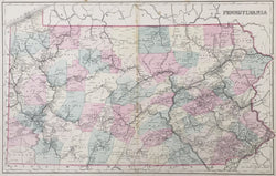 Philadelphia: O.W. Gray & Son, 1875. 15 1/4 x 24 1/4 (neat lines) plus full borders. Light staining along center fold, A few scattered spots. Map is double matted for display. Else, very good condition.