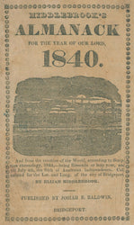 Elijah Middlebrook. Middlebrook’s Almanack for the Year of Our Lord, 1840 . . . . . Calculated for the Lat. and Long. of the city of Bridgeport.