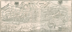 A fine sixteenth century wood cut by Sebastian Munster. Munster was one of the greatest cartographers in the era before the Dutch “modern” cartographers such as Mercator and Ortelius, and he produced influential maps in his editions of Ptolemy’s Geographia and Cosmographia. Topographical detail is surprisingly copious, with data on cities, regions, mountains and rivers abundant and of considerable historic interest. In many cases, these prints were the finest at the time, and today are some of the earliest views of European cities.