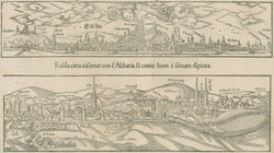 Sebastian Munster. “Erdfordia...” and “Fulda citta...” [Erfurt & Fulda, Germany]. From Cosmographia. Cologne: Arnoldo Byrckmanno, [1540]-1575. ca. 10 x 13 ½. Woodcut. Full margins. Fine impression. Very good condition.