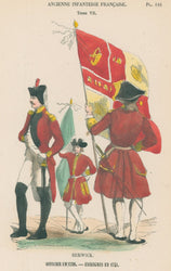 Felix Philippoteaux. Plate 116. "Berwick. Officier en 1789. - Enseignes en 1745." From Histoire de Ancienne Infanterie Française.