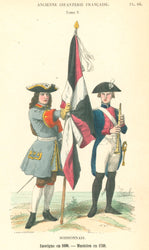 A fine print from a series of uniforms, weapons and flags of the French Royal Army prior to 1789.