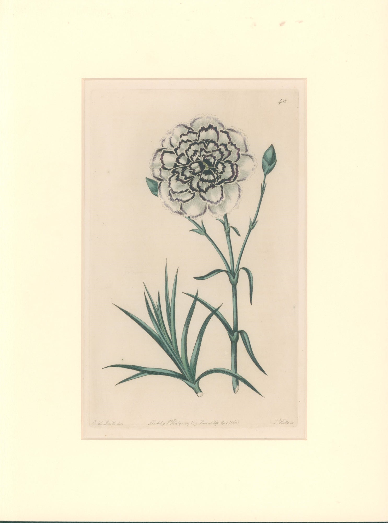 From one of many publications by the prolific naturalist author, Robert Sweet, this charming and richly colored engraving truly captures the essence of a flower in full bloom.  Each blossom in this series presents a striking and detailed example for both the serious horticulturist and the casual amateur.  Not only are the eye-catching blossoms accurately depicted, but also the important bulb or root system, foliage, and the “interior segments.”  This is indeed a delightful example of meticulous early nineteenth century natural history illustration.