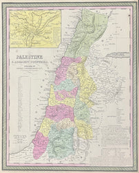 A very informative map of Palestine by Thomas, Cowperthwait & Co. The country is broken up into its Turkish provinces with a listing of all thirty eight of them. Palestine, along with many countries in the area, was part of the Ottoman empire starting in 1516 and not ending until World War I. This map also includes a map of the environs of Jerusalem, a list of the ten cities of the Decapolis, icons representing towns mentioned the sacred scripture, the ancient and modern names of many cities, and an explanation of Arabic appellatives. Finally, there is a notation of the new measurements and exploration of the Dead Sea which is "smaller than usually represented."