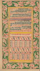 This hand drawn and bold colored page is supplemented by the gold leaf outline that provides a beautiful and eye-catching example of Hindu art of the time.