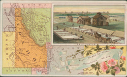 A delightful map issued by the Arbuckle Bros. Coffee Company. This firm was founded by John and Charles Arbuckle of Pittsburgh, PA. They developed a machine to weigh, fill, seal and label coffee in paper packages, which allowed them to become the largest importer and seller of coffee in the world. Their most famous promotional program involved the issuing of several series of small, colorful trading cards, one of which was included in every package of Arbuckle’s Coffee. These series included cards with sports, food, historic scenes, and—one of the most popular—maps. The latter cards included not only a map, but also small illustrations “which portrays the peculiarities of the industry, scenery, etc.” of the region depicted. This series proved so popular went first issued in 1889 that the firm came out with a second, updated series in 1915.