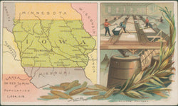 A delightful map issued by the Arbuckle Bros. Coffee Company. This firm was founded by John and Charles Arbuckle of Pittsburgh, PA. They developed a machine to weigh, fill, seal and label coffee in paper packages, which allowed them to become the largest importer and seller of coffee in the world. Their most famous promotional program involved the issuing of several series of small, colorful trading cards, one of which was included in every package of Arbuckle’s Coffee. These series included cards with sports, food, historic scenes, and—one of the most popular—maps. The latter cards included not only a map, but also small illustrations “which portrays the peculiarities of the industry, scenery, etc.” of the region depicted. This series proved so popular went first issued in 1889 that the firm came out with a second, updated series in 1915.