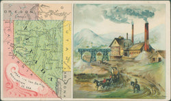 A delightful map issued by the Arbuckle Bros. Coffee Company. This firm was founded by John and Charles Arbuckle of Pittsburgh, PA. They developed a machine to weigh, fill, seal and label coffee in paper packages, which allowed them to become the largest importer and seller of coffee in the world. Their most famous promotional program involved the issuing of several series of small, colorful trading cards, one of which was included in every package of Arbuckle’s Coffee. These series included cards with sports, food, historic scenes, and—one of the most popular—maps. The latter cards included not only a map, but also small illustrations “which portrays the peculiarities of the industry, scenery, etc.” of the region depicted. This series proved so popular went first issued in 1889 that the firm came out with a second, updated series in 1915.