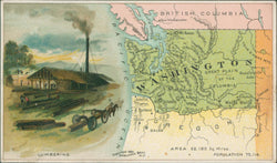 A delightful map issued by the Arbuckle Bros. Coffee Company. This firm was founded by John and Charles Arbuckle of Pittsburgh, PA. They developed a machine to weigh, fill, seal and label coffee in paper packages, which allowed them to become the largest importer and seller of coffee in the world. Their most famous promotional program involved the issuing of several series of small, colorful trading cards, one of which was included in every package of Arbuckle’s Coffee. These series included cards with sports, food, historic scenes, and—one of the most popular—maps. The latter cards included not only a map, but also small illustrations “which portrays the peculiarities of the industry, scenery, etc.” of the region depicted. This series proved so popular went first issued in 1889 that the firm came out with a second, updated series in 1915.