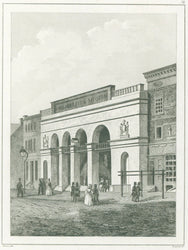 This marble structure, which was one of the architectural sights of the city when it was erected in 1827, fronted on Chestnut Street. Designed by architect John Haviland, it was introduced as an improvement and competitor to the very popular Burlington Arcade in London. “In some respects,” wrote Joseph Jackson, “the Arcade might be classed as the first office building in the United States.”