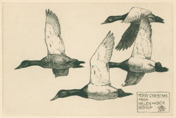 Richard Evett Bishop (1887-1975). “Merry Christmas from Helen and Dick Bishop." [Four Canvasbacks]