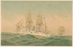 Frederic S. Cozzens (1856-1928) is considered to be one of the best American nineteenth century marine illustrators. He is first known to have sketched marine scenes as early as 1868 and he contributed many illustrations to such publications as Harper's Weekly, Daily Graphic, and Leslie's Magazine. Known best for his depiction of yachting scenes, Cozzens drew all types of watercraft, including naval images such as this. His first publication was American Yachts, Their Clubs and Races, which contained 27 chromolithographs, and his work was so well received that Cozzens produced four other series of prints: Typical American Yachts (1886); Yachts and Yachting (1887); Our Navy, Its Growth and Achievements (1892); and Old Naval Prints (1892). These are nice examples from his work, Our Navy, illustrating the American Navy just before the turn of the century. Each image shows identified ships of the navy in port or on the high seas. The accurate and detailed illustrations of the older sailing ships and the newer iron clad steamers makes these as historically fascinating as they are attractive.