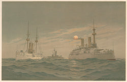 Frederic S. Cozzens (1856-1928) is considered to be one of the best American nineteenth century marine illustrators. He is first known to have sketched marine scenes as early as 1868 and he contributed many illustrations to such publications as Harper's Weekly, Daily Graphic, and Leslie's Magazine. Known best for his depiction of yachting scenes, Cozzens drew all types of watercraft, including naval images such as this. His first publication was American Yachts, Their Clubs and Races, which contained 27 chromolithographs, and his work was so well received that Cozzens produced four other series of prints: Typical American Yachts (1886); Yachts and Yachting (1887); Our Navy, Its Growth and Achievements (1892); and Old Naval Prints (1892). These are nice examples from his work, Our Navy, illustrating the American Navy just before the turn of the century. Each image shows identified ships of the navy in port or on the high seas. The accurate and detailed illustrations of the older sailing ships and the newer iron clad steamers makes these as historically fascinating as they are attractive.