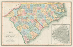 John Hinton. "Map of the States of North and South Carolina". From The History and Topography of the United States of America.