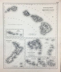 J.H. Colton. "Hawaiian Group or Sandwich Islands. New Zealand. FeeJee Islands. Society Islands. Marguesas Island. Calapacos Islands".