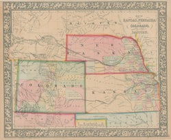 S. Augustus Mitchell, Jr. “Map of Kansas, Nebraska and Colorado Showing also The Southern portion of Dacotah”.
