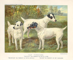 Vero Shaw. “Fox Terriers. ‘Bristles’ The Property of Mr. S.E. Shirley; ‘Buffet’ The Property of Mr. W.J. Hyde; ‘Bloom’ The Property of Mr. F. Burbidge.” From Cassell’s The Illustrated Book of the Dog.