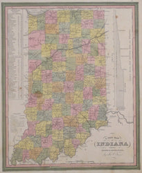 H.S. Tanner. "A New Map of Indiana with its Roads & Distances." From Tanner's Universal Atlas.
